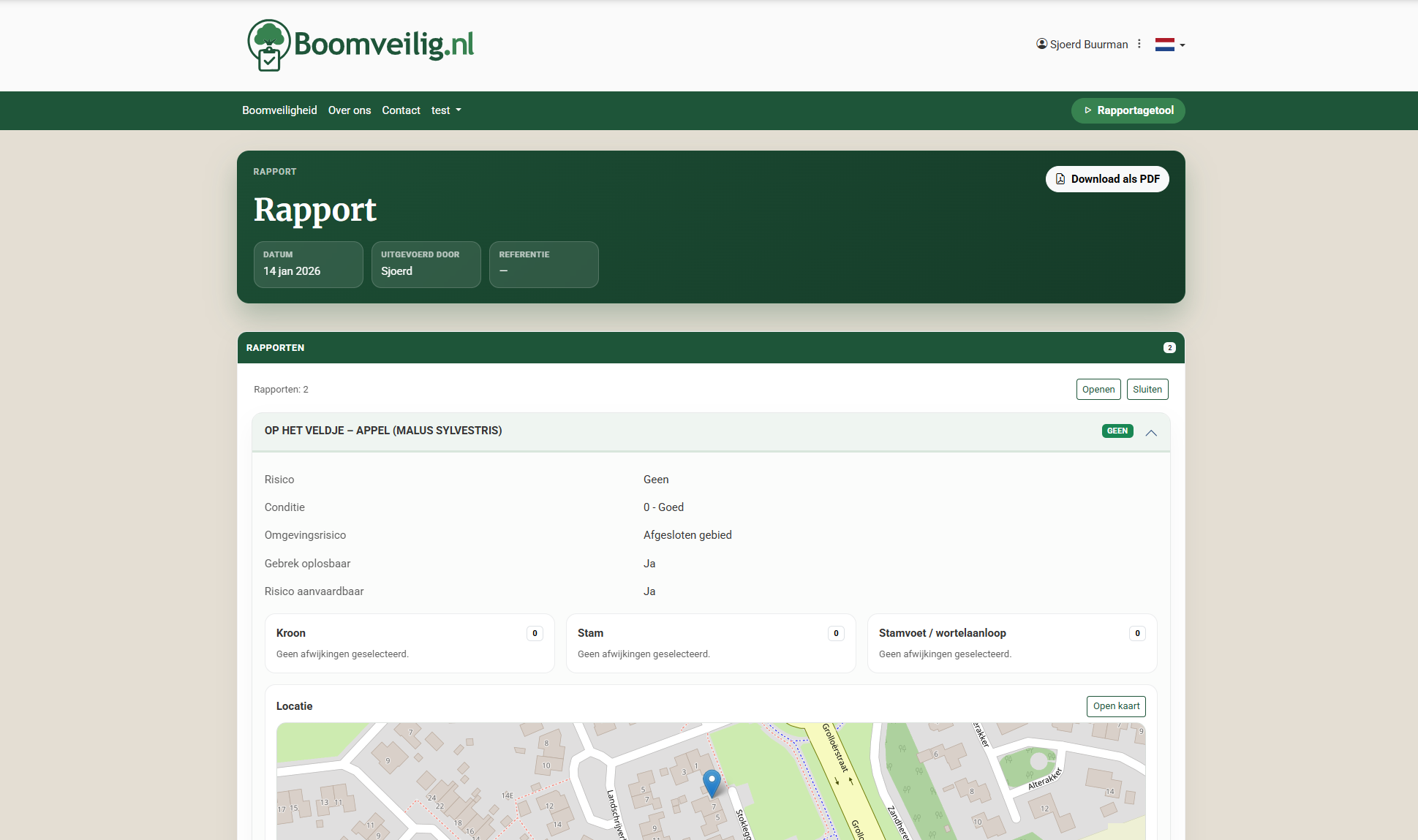 Registreer bomen, inspecties, foto's en rapportresultaten in één online werkomgeving voor inspecteurs, gemeenten en terreinbeheerders.